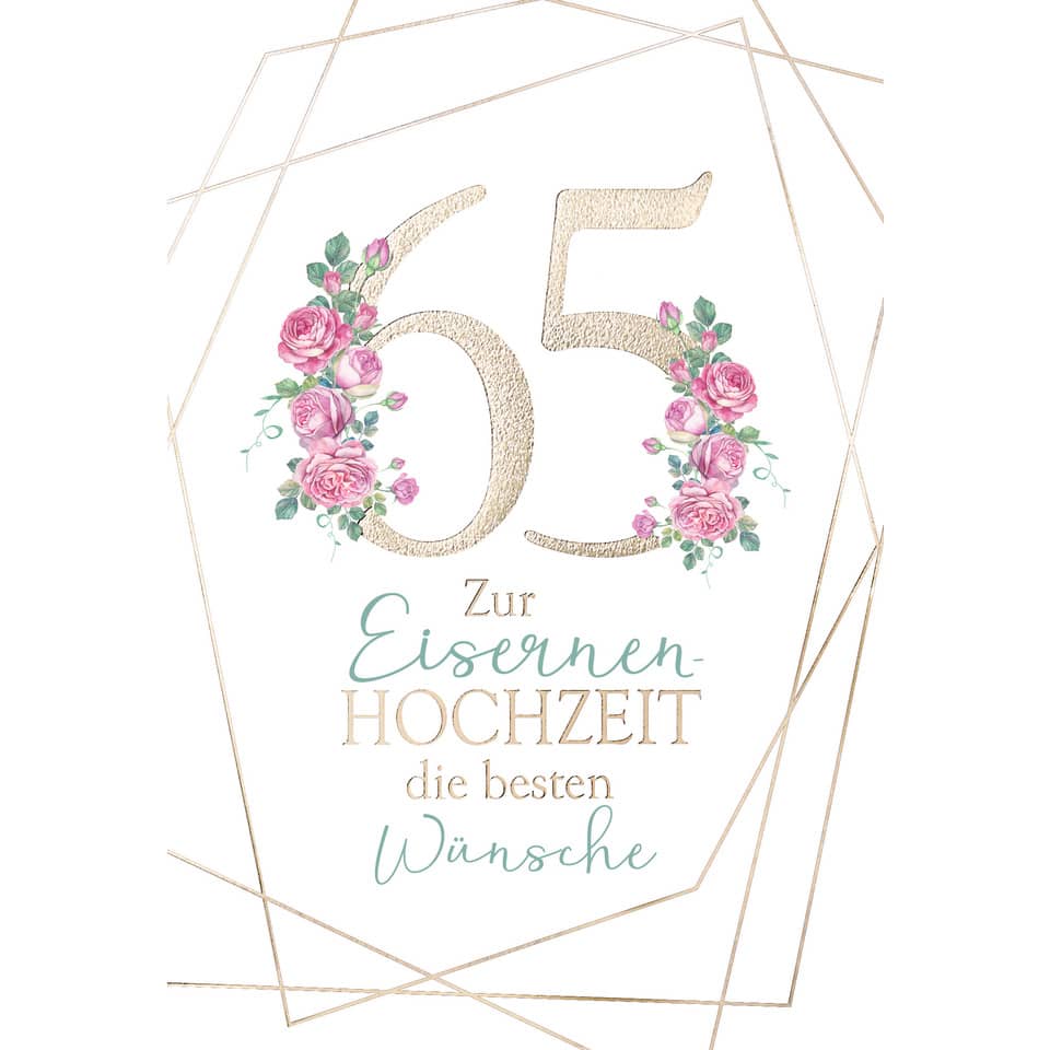 Hochwertige Ereigniskarte zur Eiserne Hochzeit aus Karton, inklusive Umschläge.