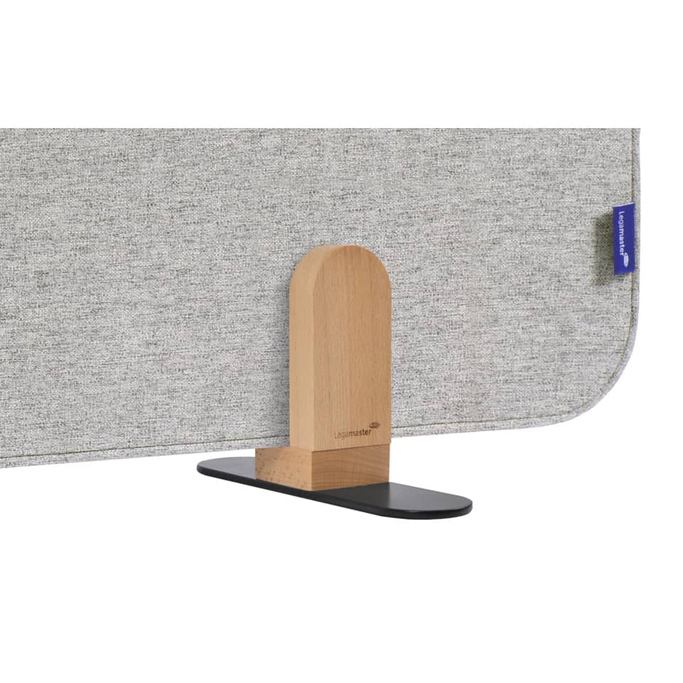 Hochwertige, rahmenlose Tischtrennwand, doppelseitig als schallabsorbierendes Pinboard verwendbar. Tafel-Abmessungen: 60 x 160 x 2,1cm. 100% wiederverwertbarer schallabsorbierender PET-Kern. Hochwertige, schwer entflammbare Stoffoberfläche. Brandschutzklasse B-S2, d0 nach EN13501-1:2007+A1:2009. Schallabsorptionsklasse C. Erhältlich in 2 Standardfarben: Soft Beige und Quiet Grey. Set mit 2 Halterungen aus Holz enthalten für die freistehende Montage der Trennwand auf einem Schreibtisch. Halterung ist nur zur Montage der horizontalen Ausführung von ELEMENTS Trennwänden geeignet. Holz ist ein Naturprodukt. Jede Halterung, hergestellt aus lackiertem Buchenholz (Fagus sylvatica), ist einzigartig in Farbe und Aussehen. Das Material für die Herstellung dieses Produkts (Halterungen) stammt aus nachhaltig bewirtschafteten, und anderen kontrollierten Quellen. Einfache Montage mit enthaltenem Inbusschlüssel. Das elegante Design mit abgerundeten Ecken lässt sich perfekt mit den ESSENCE Whiteboards und SPACE-UP Produkten kombinieren. Nur zur horizontalen Montage geeignet.
