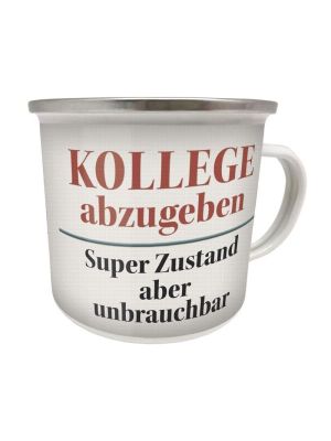 Emailletasse mit Henkel: Kollege abzugeben Super Zustand aber unbrauchbar Emaillebecher Kollege