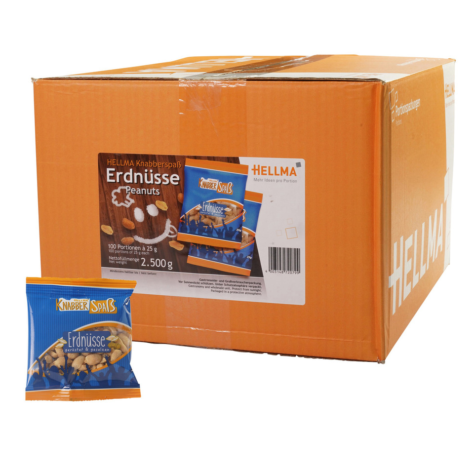 Die gesalzenen und gerösteten Erdnüsse in der Portionspackung mit 25g sind der geeignete Snack für zwischendurch. Mit 100 Portionen im Karton ist ein weiterer Klassiker im Snackbereichin der idealen Portionsgröße für die Zwischenverpflegung erhältlich.