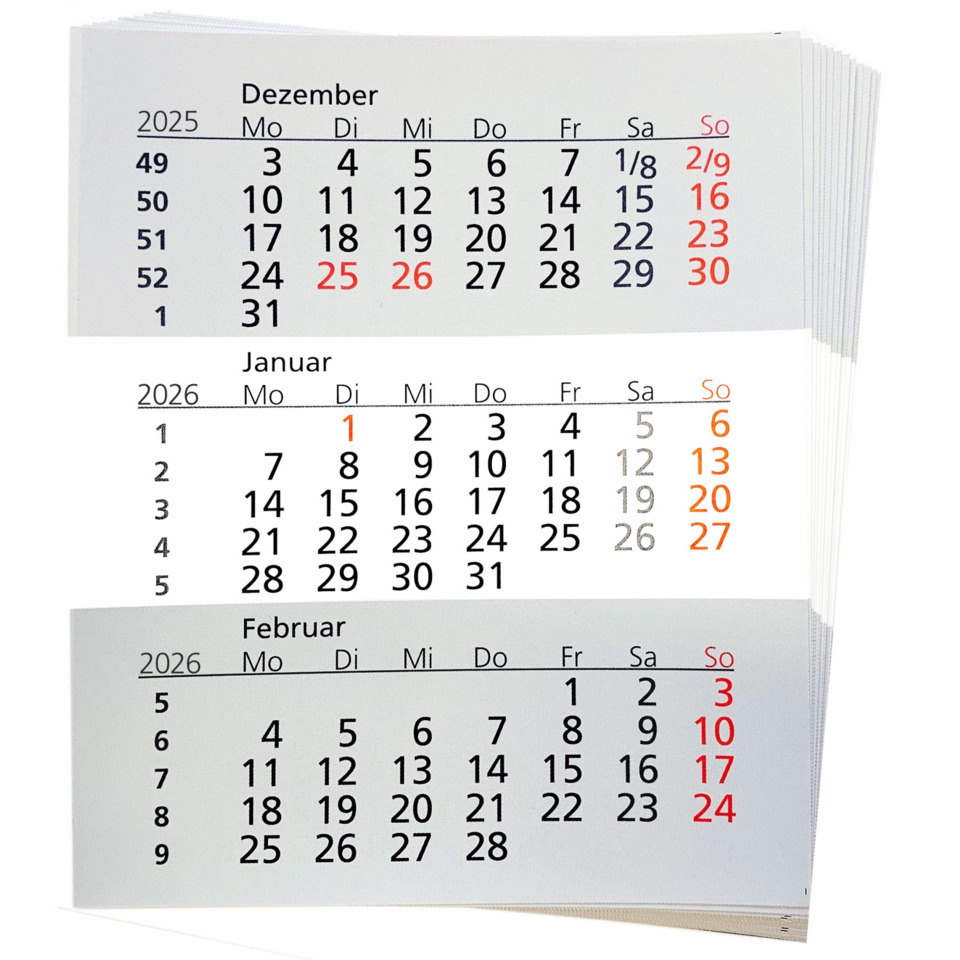 Tischaufsteller mit Kunststoffrahmen. Der zweifarbige Druck sorgt für optimale Lesbarkeit, während Sonn- und Feiertage in Rot hervorgehoben sind ganz klassisch im deutschsprachigen Kalendarium. Dank des praktischen 2-Jahres-Formats behalten Sie langfristig den Überblick. Einfach austauschbar, passt dieses Ersatzkalendarium perfekt in bestehende Tischkalenderrahmen ideal fürs Büro oder Homeoffice.
