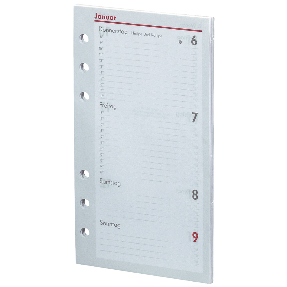 Kompakt A6 Kalendarium (1 Woche = 2 Seiten) – Blattformat: 9,5 x 16,7 cm.