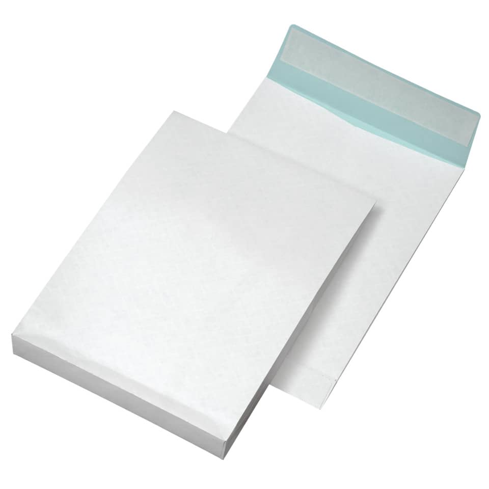 Faltentasche. Fadenverstärkt. Format: B4. Größe: 353 x 250 mm (B x H). Falte: 40 mm. Haftklebend mit Abdeckstreifen. Ohne Fenster. weiß/blau. Papiergewicht: 140 g/m². Packung mit 250 Stück.