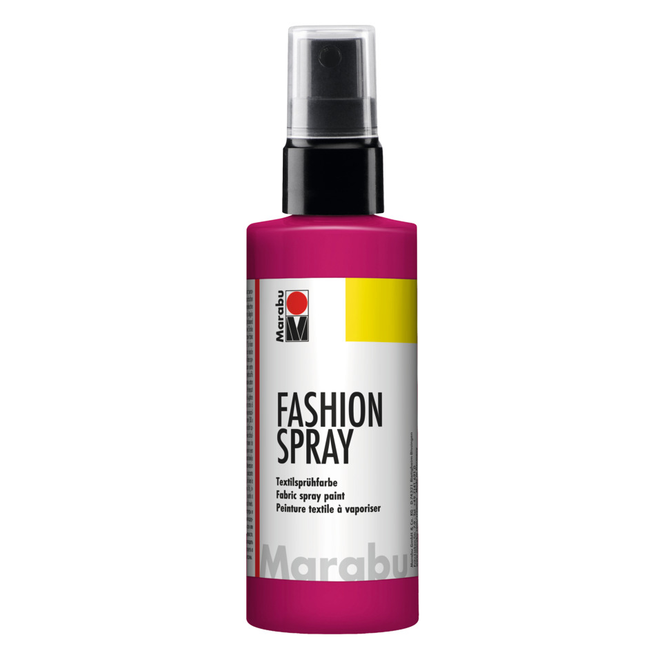 Spray your own Fashion! Sprühender Farbspaß auf Textil. Jeder kann seinen Lieblingsstyle auf T-Shirts, Taschen, Kissen und Vorhänge bringen. Super schnell und easy lassen sich Ihre eigenen Textilkreationen verwirklichen. Das vielfältige, brillante Farbangebot bietet für jeden Geschmack, jede Jahreszeit und jeden Anlass das Passende. Die wasserbasierte Textilsprühfarbe in der praktischen Pumpsprühflasche ist für helle Textilien bis max. 20 % Kunstfaseranteil geeignet. Vor dem Bemalen Appretur und Weichspüler auswaschen. Unterlage und Kleidung vor dem Sprühen großzügig abdecken, Pappe zwischen die Stofflagen schieben und je nach Bedarf Einmalhandschuhe verwenden. Marabu Fashion-Spray auf den trockenen Stoff sprühen und trocknen lassen. Nach der Fixierung (Bügeleisen: 30 x 30 cm, 3 Min. bei Baumwolltemperatur/Backofen: vorgeheizt, 150 °C/8 Min.) sind die Textilien waschbeständig bis 40 °C (von links waschen und bügeln). Ob freies Sprühen mit Farbverläufen, Schablonieren, Abkleben/Ablegen oder Abbinden, mit der geruchsneutralen und lichtechten Farbe sind unzählige Techniken möglich. Mit dem Marabu Fashion-Spray in Kombination mit dem Fashion-Liner und den Silhouette-Schablonen werden Modeträume wahr.