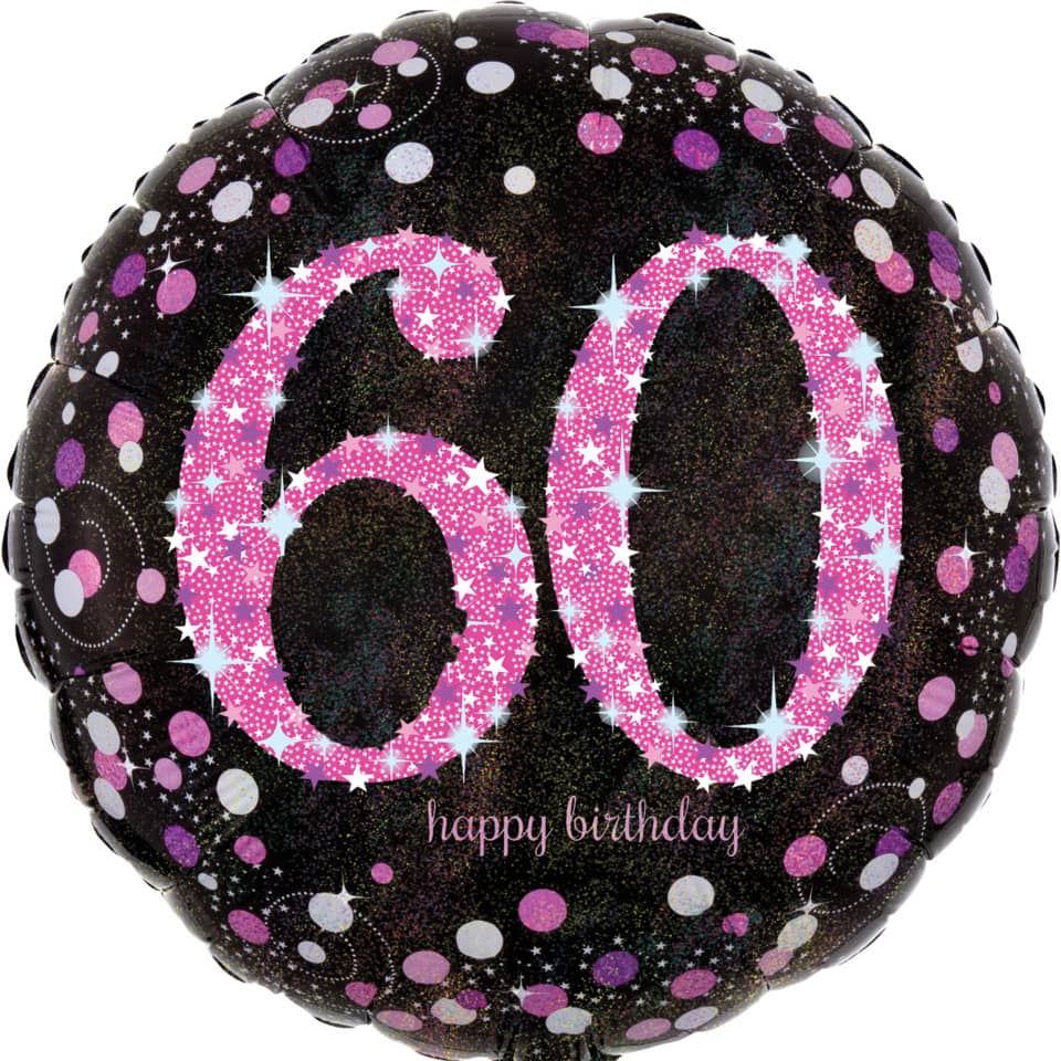 Folienballon Happy Birthday 60 – Ø 43 cm, schwarz/pink, Konfetti