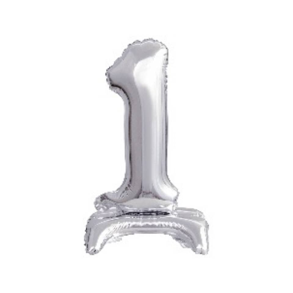 Folienballon Mini Zahl 1 – 15 x 38 cm, mit Standfuß, silber