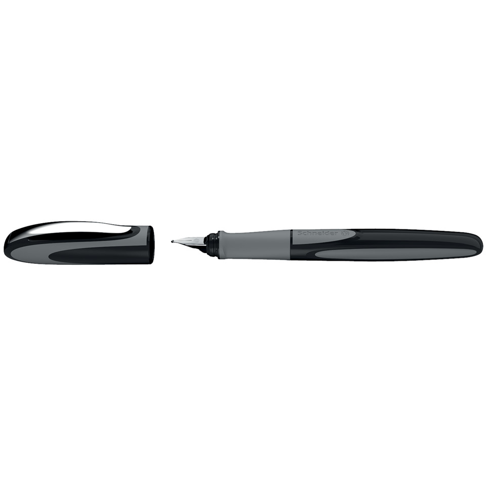 Füllhalter Ray. Material der Schreibfeder: Edelstahlfeder mit Iridiumkorn. Tintenpatrone: Standard-Tintenpatrone, königsblau, löschbar. Kolbentankkonverter verwendbar. Material des Schaftes: Kunststoff. Ausführung der Griffzone: ergonomisch gummiertes Griffprofil. Clip: Stabiler Metallclip, silber. Stylischer Füller mit dynamischen Design-Details. Ausführung der Feder: M. Farbe des Schaftes: onyx. Ausführung des Inhalts mit Packung: Füllhalter verpackt in transparenter Einzelschachtel.