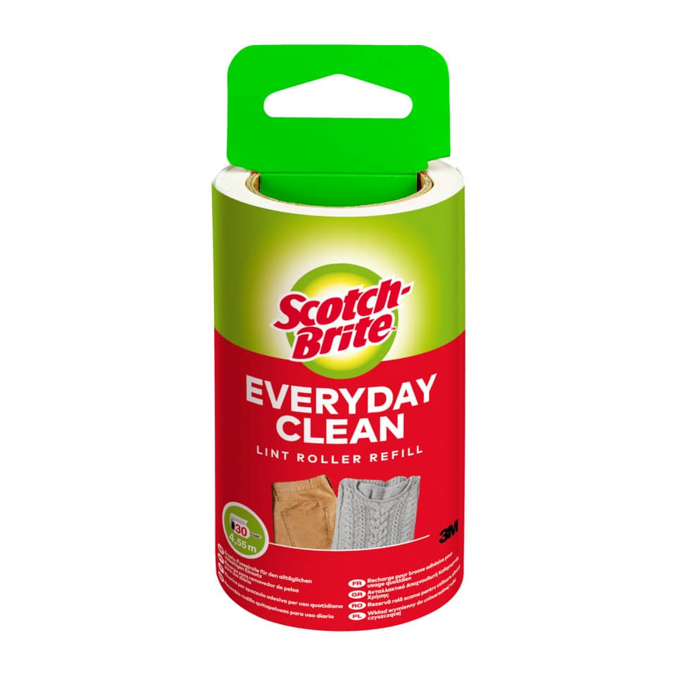 Nachfüllrolle für selbstklebender Fusselfänger mit 3M Ultra-Tack Haftkleber zur gründlichen und schonenden Entfernung von Staub und Fusseln von Kleidung sowie Polstern. Verbrauchte Klebeblätter sind durch Speziel-Perforierung einfach abzutrennen. Leichtes Abrollen. Rolle mit 30 Blatt.