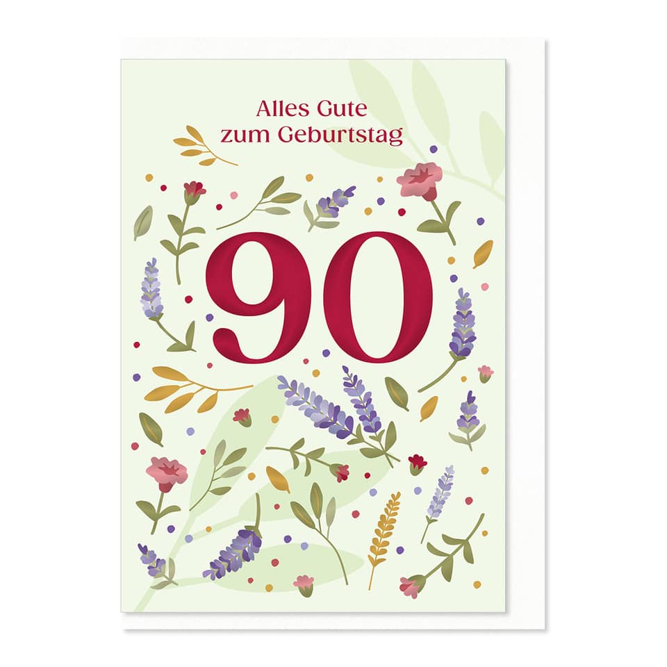 Geburtstagskarte Zahl 90 – mit Metalliceffekt, inkl. Umschlag