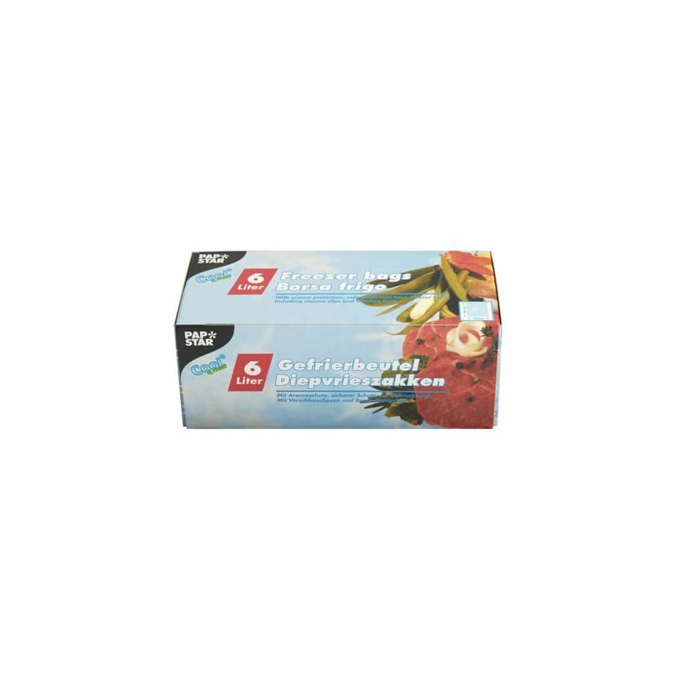 45 Gefrierbeutel, LLDPE 6 l 46 cm x 30 cm transparent in Faltschachtel. Mit praktischen Beschriftungsfeld und Verschlussclipsen.
