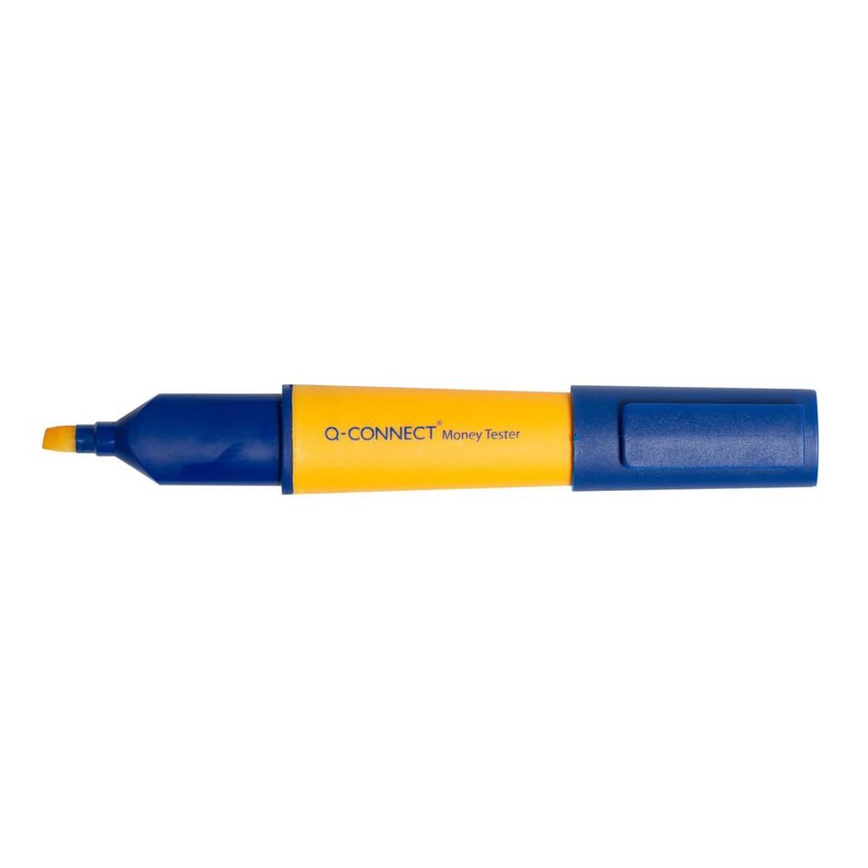 Banknotenprüfstift. Gehäuse-Endstück und farbige Markierung an der Kappe in Schreibfarbe, nicht nur auf dunklen Flächen sichtbar