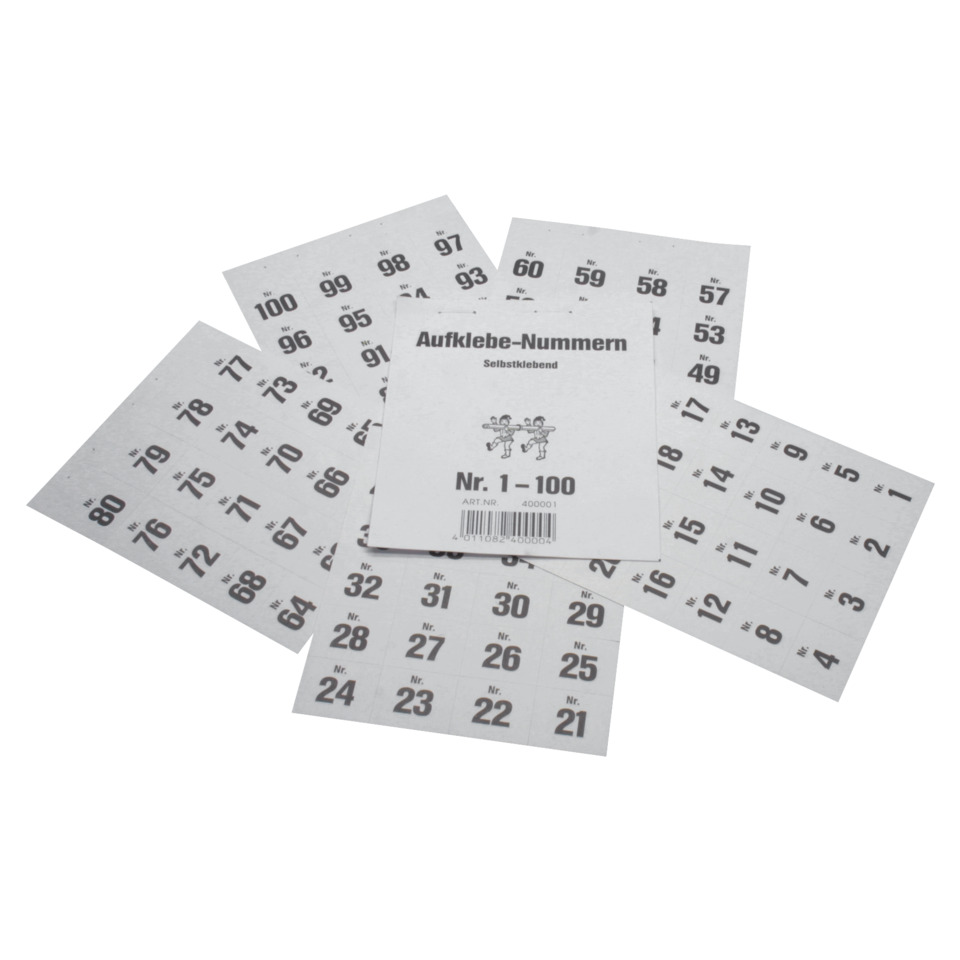 Gewinnaufklebenummern 901-1000 zur Kennzeichnung von z.B. Tombola-Gewinnen. Block, perforiert mit selbstklebenden, farbig bedruckten, Nummernetiketten.
