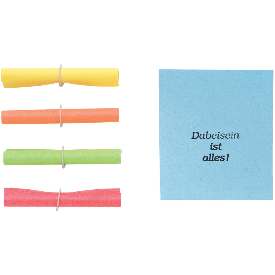 Nieten bunt. Gerollt mit Papierring. 5 Farben sortiert. Bedruckt mit lustigen Sprüchen.
