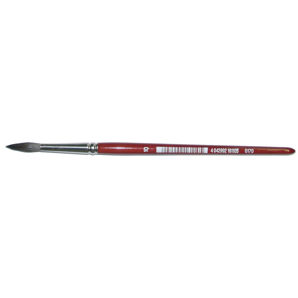 Der Haarpinsel für schöne Aquarellbilder. Der Aquarell-Haarpinsel hat eine runde Ausführung und silbernen Zwingen. Der Stiel mit Größenstempelung liegt gut in der Hand und sorgt für ein schönes Malergebnis, auch bei feinen Malarbeiten. Ideal für Schule, Hobby und Beruf zum problemlosen Verarbeiten von Acrylfarben.