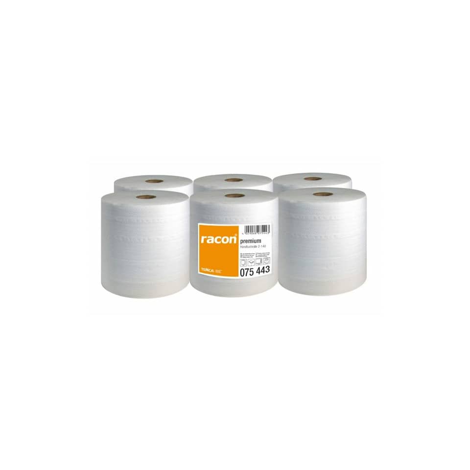 Zweilagige hochwertige Zellstoff-Tissue-Qualität als System-Handtuchrolle für die effiziente Hygiene im modernen Waschraum. Die zwischenblattverleimten Handtücher sind sehr saugstark. 6 Rollen. Zellstoff verleimt. Hochweiß 2-lagig. 20 cm x 140 m – Kern 4,0 cm. Unperforiert. Für Außenabwicklung. 35,0 g/qm.