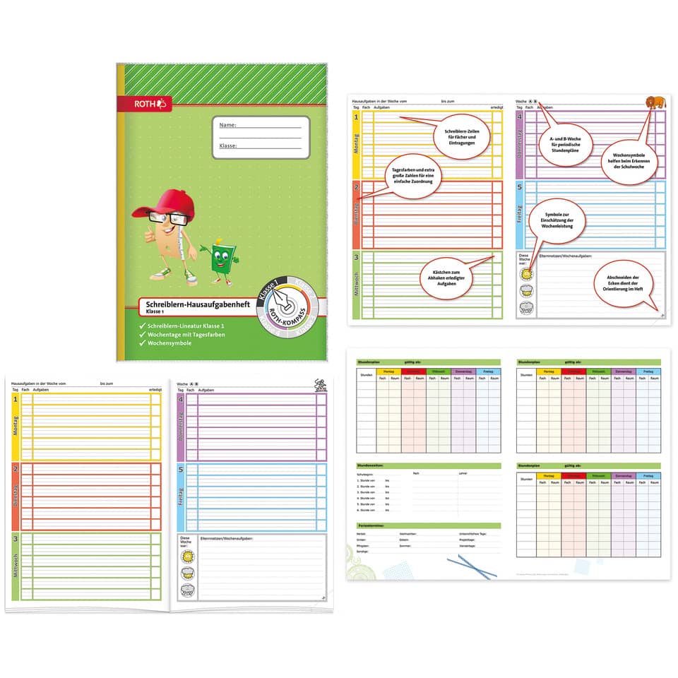 Ein innovative Schreiblern-Hausaufgabenheft für Schüler des 1. Schuljahr mit System. Durch die Schreiblern-Lineatur fällt das Schreiben viel einfacher. Die Kästchen zum Abhaken erledigter Aufgaben bieten eine gute Übersicht. Mit farbigen Wochentagen können die Schüler bereits ab dem ersten Schultag den richtigen Wochentag finden. Lustige Tiersymbole helfen beim Erkennen der Woche. Das Heft hat eine stabile und glasklaren Hülle.