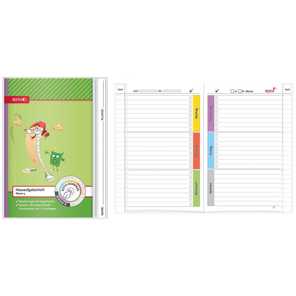 Ein innovative Schreiblern-Hausaufgabenheft für Schüler des 4. Schuljahr mit System. Der Stundenplan kann einmal eingetragen werden und fertig. Das Heft hat eine stabile und glasklaren Hülle.