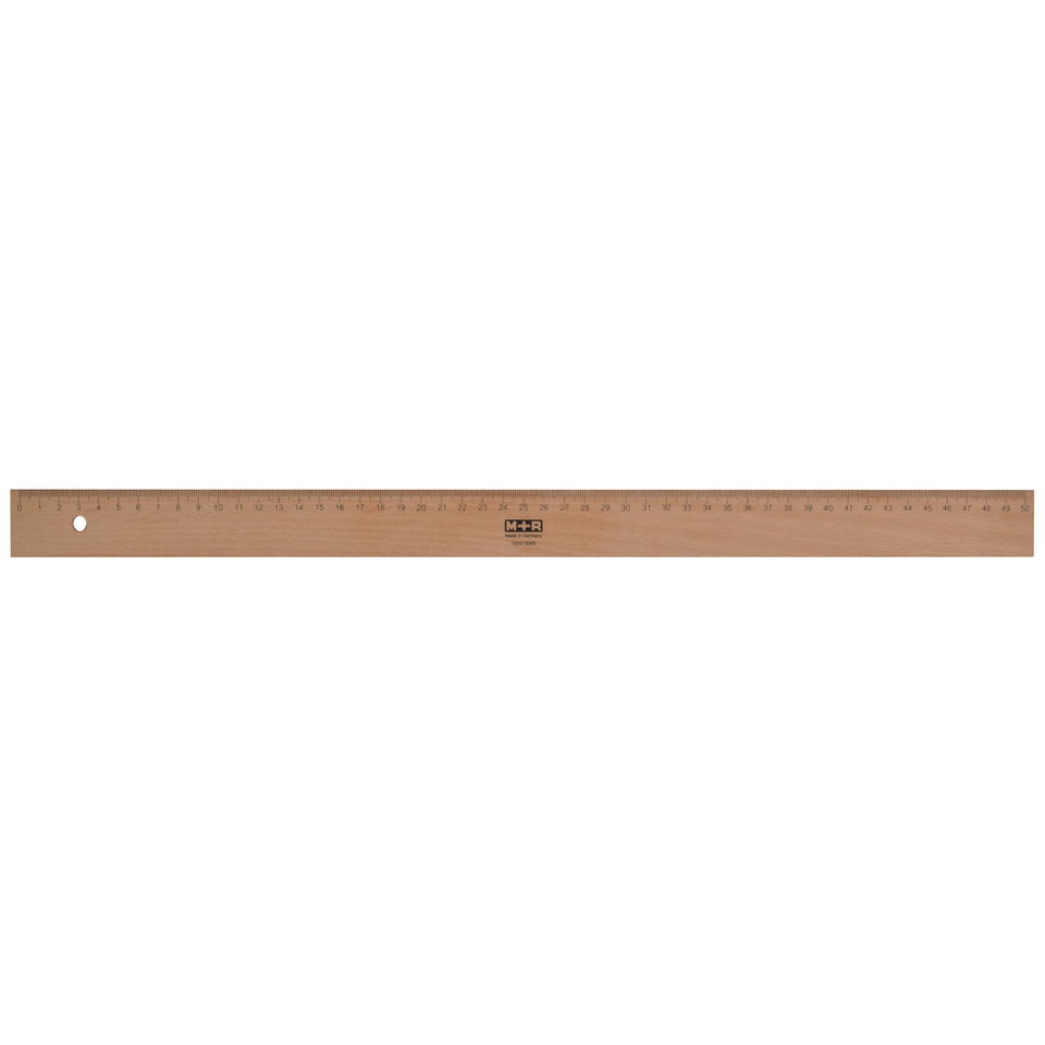 Aus Buchenholz mit Metalleinlage, unlackiert. mm-Teilung. Tuschekante, Aufhängeloch.