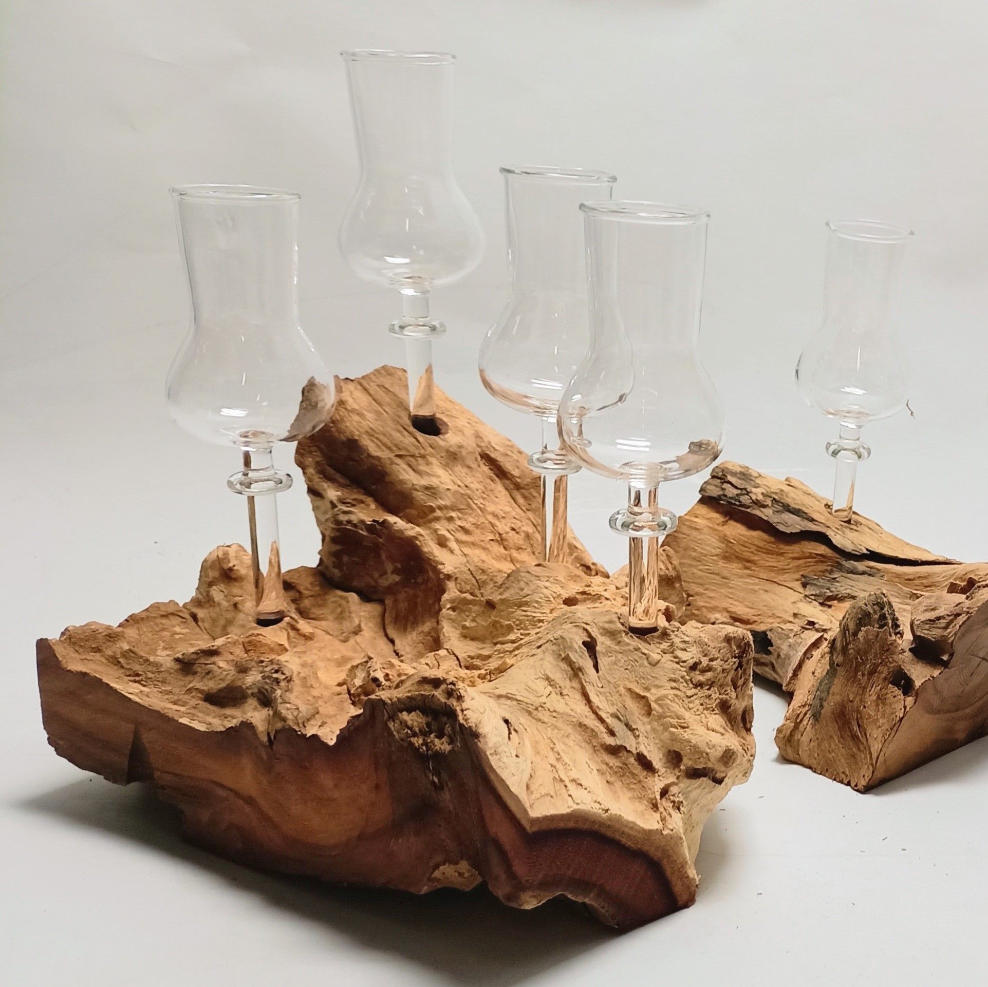 Musterabbildung ! Dies ist ein Naturprodukt, jedes Teil ein Unikat ! Holzwurzel mit 4 Stamperl klein