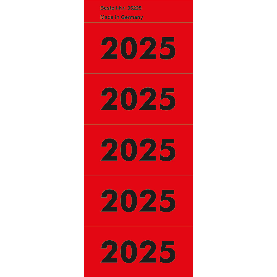 Inhaltsschildchen 2025 (rot) für Aktenordner, 20 Blatt á 5 Schildchen = 100 Schildchen
