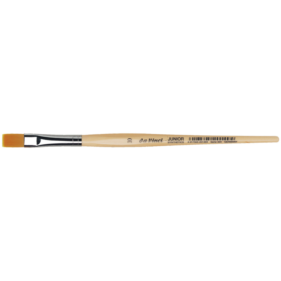 Schulpinsel Junior Synthetics: Mit einem stabilen, nahezu unverwüstlichen Pinselkopf mit einer fein ausgearbeiteten Strichkante. Kein Anrosten der Zwinge mehr, da diese aus rostfreim, hochglanzpoliertem Metall besteht. Mit einem auf Wasserbasis lackiertem Stiel, der an seiner dicksten Stelle eine Abflachung aufweist um ein Wegrollen zu verhindern. Größe: 24.