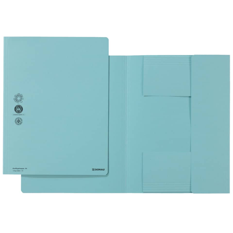 Aus 100 % Recyclingkarton 250 g/qm. Mit 3 Klappen und Falzungen zur Einstellung der Inhaltsmenge. Für Format A4. Ausgezeichnet mit dem österreichischen Umweltzeichen und dem Blauen Engel. Format A4, Größe BxH: 24,5 x 32,0 cm. Farbe: blau