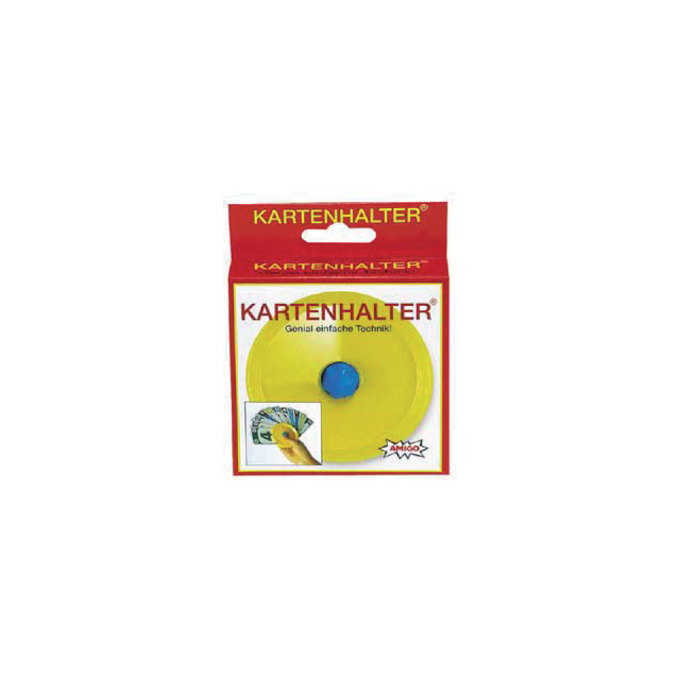 Ein nützliches Utensil zu jedem Kartenspiel: der Kartenhalter. Er fasst bis zu 30 Karten gleichzeitig. Sie übersehen niemals wieder einen Trumpf. Mit dem Kartenhalter kann man auch spielend leicht die Karten auffächern. Und so geht es: Die Karten werden in den Zwischenraum der beiden Scheiben gesteckt. Nun fassen Sie die beiden Scheiben an und drehen diese entgegengesetzt. Fertig! Alle Karten sind aufgefächert.