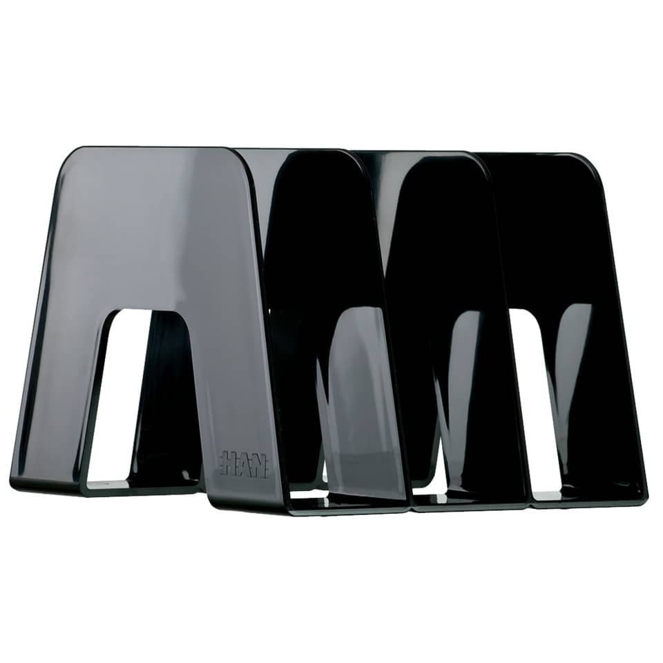 Praktischer Katalogsammler SORTER in eleganter Optik mit hochglänzender Oberfläche. Drei Fächerunterteilungen mit je 65 mm Breite. Rutschfeste, möbelschonende Gummifüße. Fassungsvermögen ca. 3 x 65 mm. Außenmaße: (B x H x T): 209 x 163 x 224 mm. Material: hochwertiger Kunststoff Polystyrol (PS).