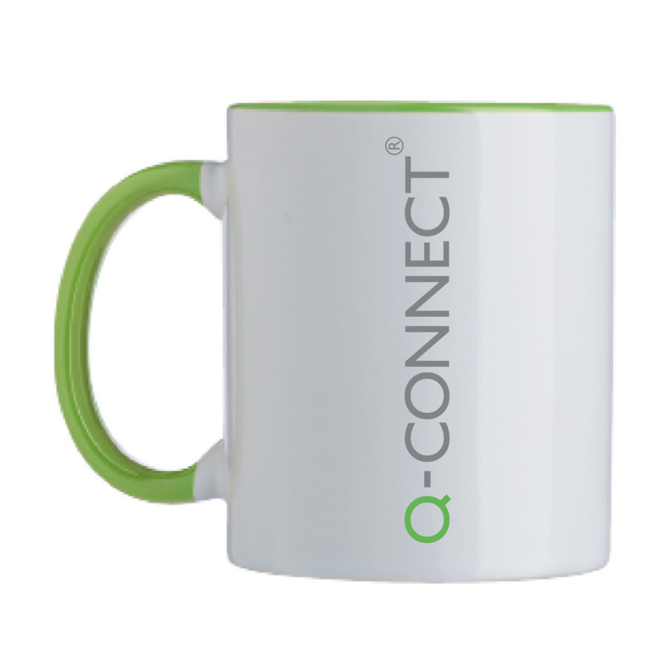 Klassische, gerade, weiße Keramiktasse mit Henkel. Füllmenge: 330ml. Durchmesser = 82 mm. Gewicht = 360g. Farbe: weiß.