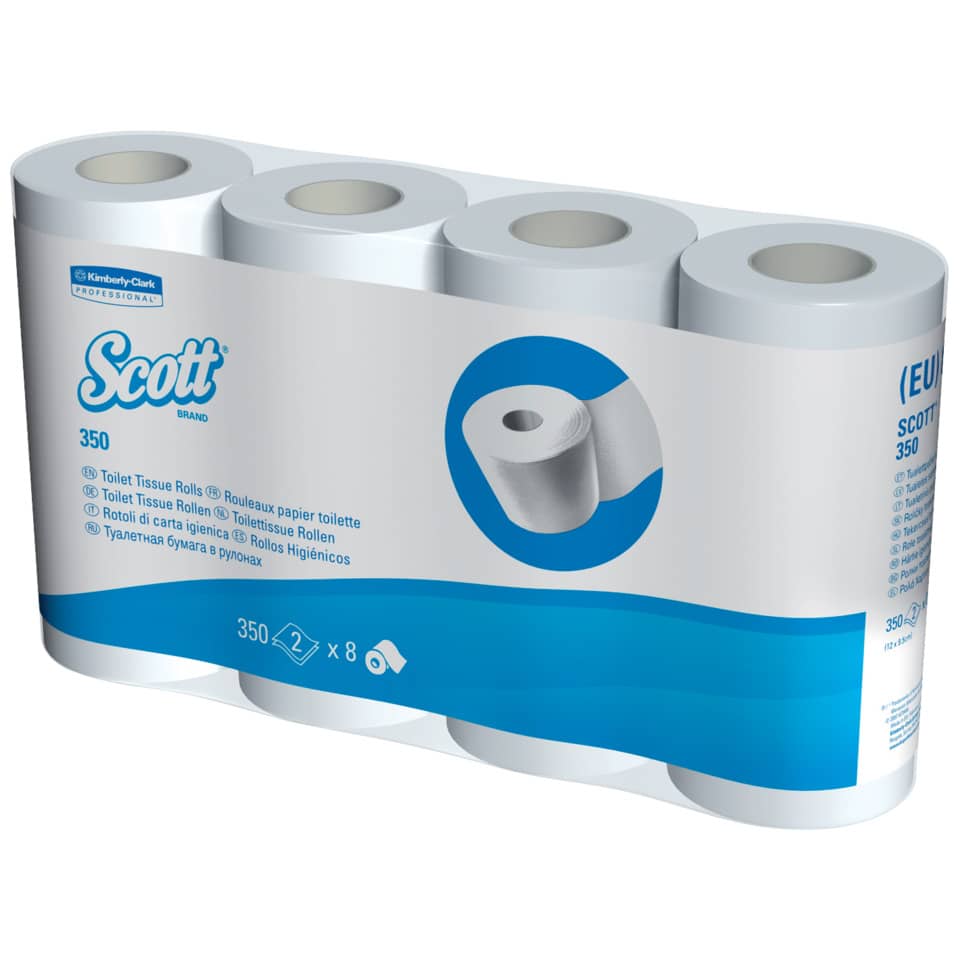 Toilettenpapier aus weichem Tissue in konstanter Qualität, geprägt. Farbe: hochweiß. Rolle mit 350 Blatt.