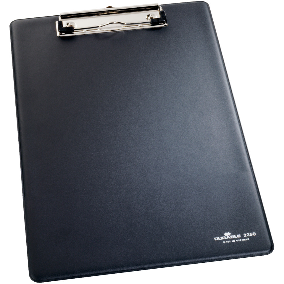 DURABLE BLOCKKLEMME, schwarz. Für Format DIN A4. Mit starker, rutschhemmender Federklemme, Tasche für Blockrücken und herausziehbarer Aufhängeöse.