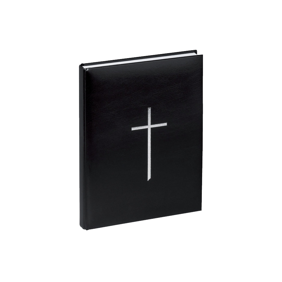 PAGNA Kondolenzbuch, 120 Blatt, schwarz hochwertiger Kunststoffeinband mit Silberprägung, mit Kreuz auf dem Vorderdeckel, Maße: (B)195 x (H)255 mm. Darin können Angehörige & Gäste der Trauerfeier persönliche Worte an die Hinterbliebenen des Verstorbenen richten. Für Trauersprüche, Texte oder Gedichte.