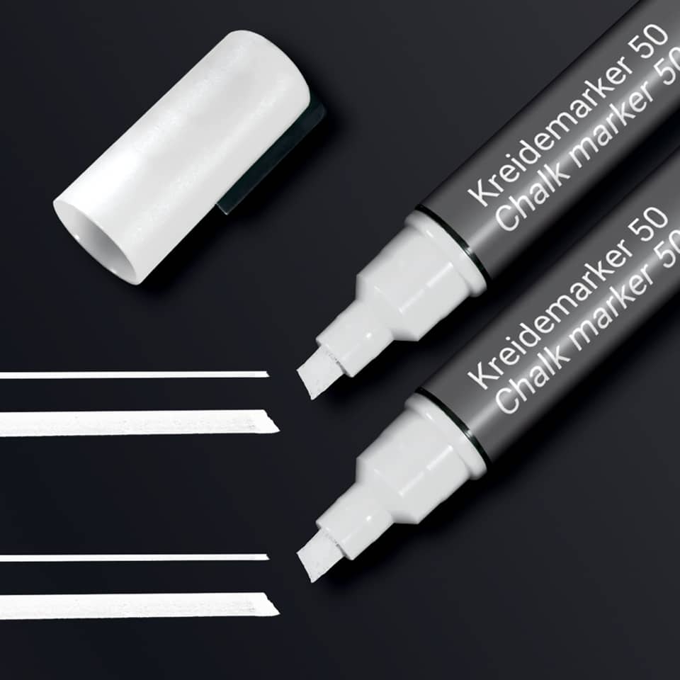 Der leicht abwischbare Kreidemarker (weiß, 2 Stück) mit Keilspitze (schmal, 1-5 mm) eignet sich perfekt für plakative Schriften auf glattem Glas, Glas-Magnettafeln und fast allen geschlossenen Oberflächen. Wenn Sie auf Whiteboards oder Glas-Magnettafeln Ideen visualisieren, an Pinboards Arbeitsabläufe auf Karten anpinnen oder im Team Projektfortschritte für alle Teammitglieder sichtbar machen möchten, dann nutzen Sie einfach die hochwertigen Board-Accessoires von SIGEL. Hier finden Sie alles, was Sie für agile Arbeitsweisen benötigen. Auspacken und loslegen! Tipp zum langen Gebrauch: Lagern Sie den Stift waagrecht oder mit der Kappe nach unten senkrecht in Ihrer Stiftebox.