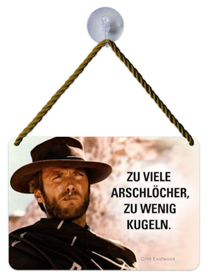 Spruchschild zum Aufhängen: Zu viele Arschlöcher, zu wenig Kugeln. Clint Eastwood Kulthänger Clint Eastwood