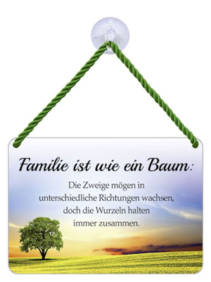 Spruchschild zum Aufhängen: Die Zweige mögen in unterschiedliche Richtungen wachsen, doch die Wurzeln halten immer zusammen. Kulthänger Familie + Baum