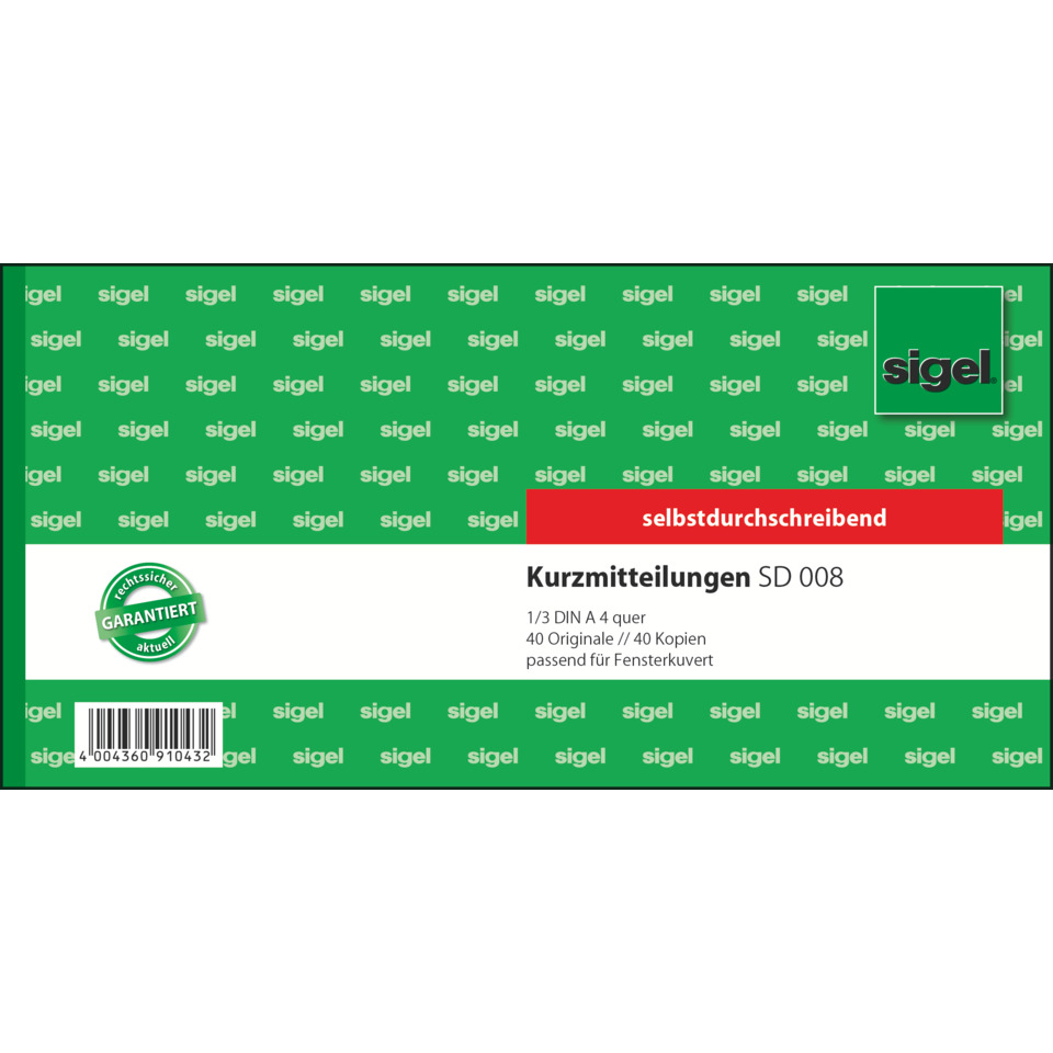 Für die schnelle Information oder als kurzer Begleitbrief zu Warensendungen – die selbstdurchschreibende „Kurzmitteilung“ transportiert Ihre Botschaft klar und unmissverständlich. Mit verschiedenen Bearbeitungshinweisen zum Ankreuzen, Anschriftenfeld passend für DIN lang Umschläge mit Fenster. Mit farbigem Durchschlag für Ihre Ablage. Jedes Blatt mit Abheftlochung und ultra-feiner Microperforation für leichtes und sauberes Abtrennen. Formularbuch im Format 1/3 A4 quer, mit besonders haltbarer Spezial-Rückenleimung und integrierter Schreibunterlage zum Einklappen.