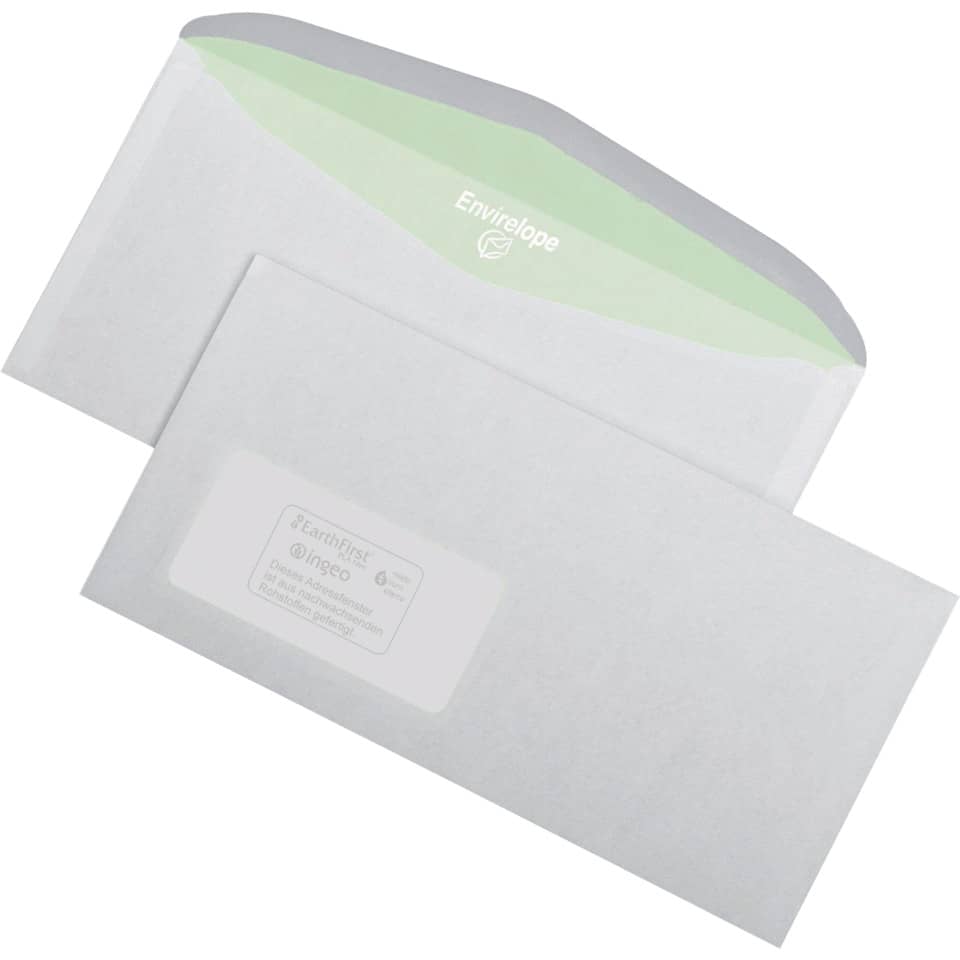 Produktion mit Ökostrom. Druck mit Ökofarben. Biologisch abbaubare Fensterfolie. Für Kuvertiermaschinen geeignet. Farbe weiß.