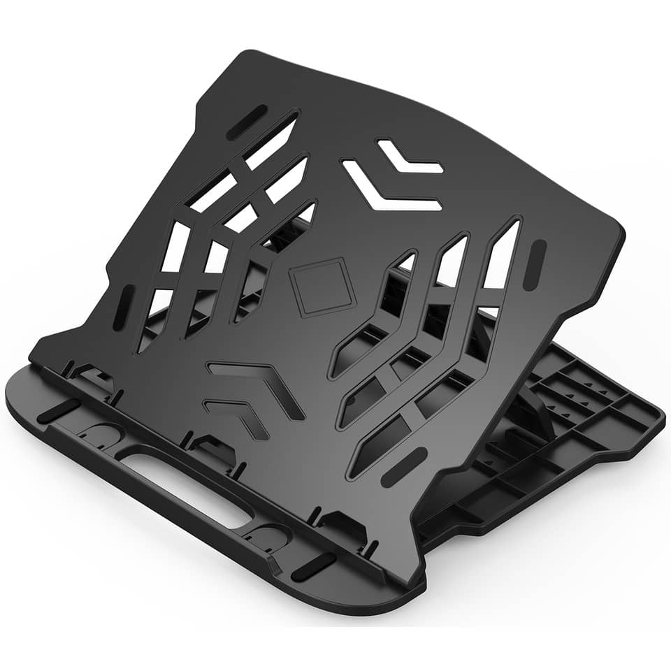 Der faltbare und tragbare Laptop Halter bringt das Notebook in eine angenehme Arbeits- und Sichthöhe. Je nach Platzangebot zur Verwendung mit oder ohne externen Tastatur. Die obere Platte kann in mehreren Einstellwinkeln fixiert werden, um die Belastung von Augen, Nacken und Schulter zu verringern. Sehr praktische Zusatzfunktion: Die Notebook Halterung kann durch die 360° drehbaren Bodenscheibe ganz leicht angepasst werden. Widerstandsfähiges Kunststoffmaterial. Völlig flach zusammenklappbar und dadurch ideal für Unterwegs. Geeignet für Notebook Größen bis 17 zoll. Größe BxHxT zusammengeklappt: 280 x 20 x 255 mm. Farbe: schwarz.