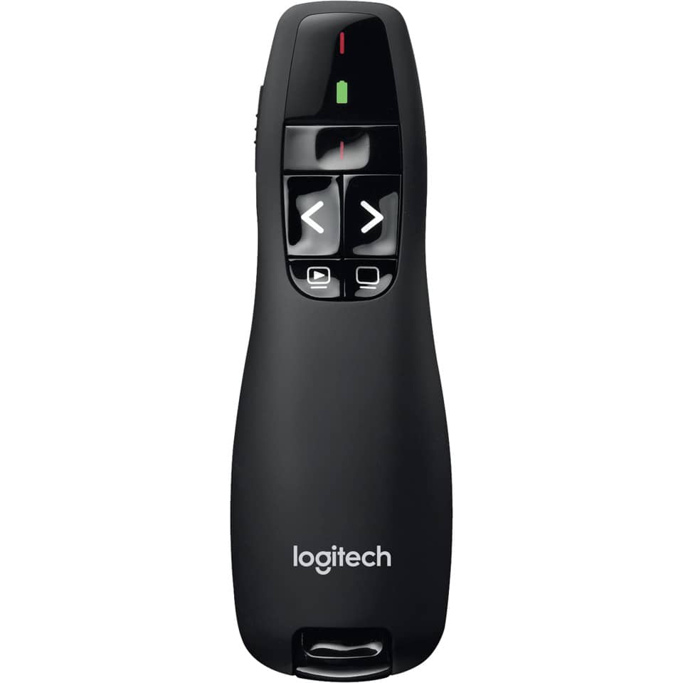 Mit den praktischen Bedienelementen dieses kabellosen Präsentationsgeräts bringen Sie es auf den Punkt. Die intuitiven Bedienelemente und der rote Laserpointer machen Präsentationen selbst in den dunkelsten Vortragsräumen zu einem Kinderspiel. Dank der Reichweite von 15 Metern und der Batteriestandsanzeige werden gewöhnliche Präsentationen außergewöhnlich. Sofort einsatzbereit: Eine Software ist nicht erforderlich. Schließen Sie einfach den Empfänger an eine USB-Schnittstelle an und los geht’s. Lieferung mit 2 Batterien AAA. Kompatibel mit Windows® ab XP.