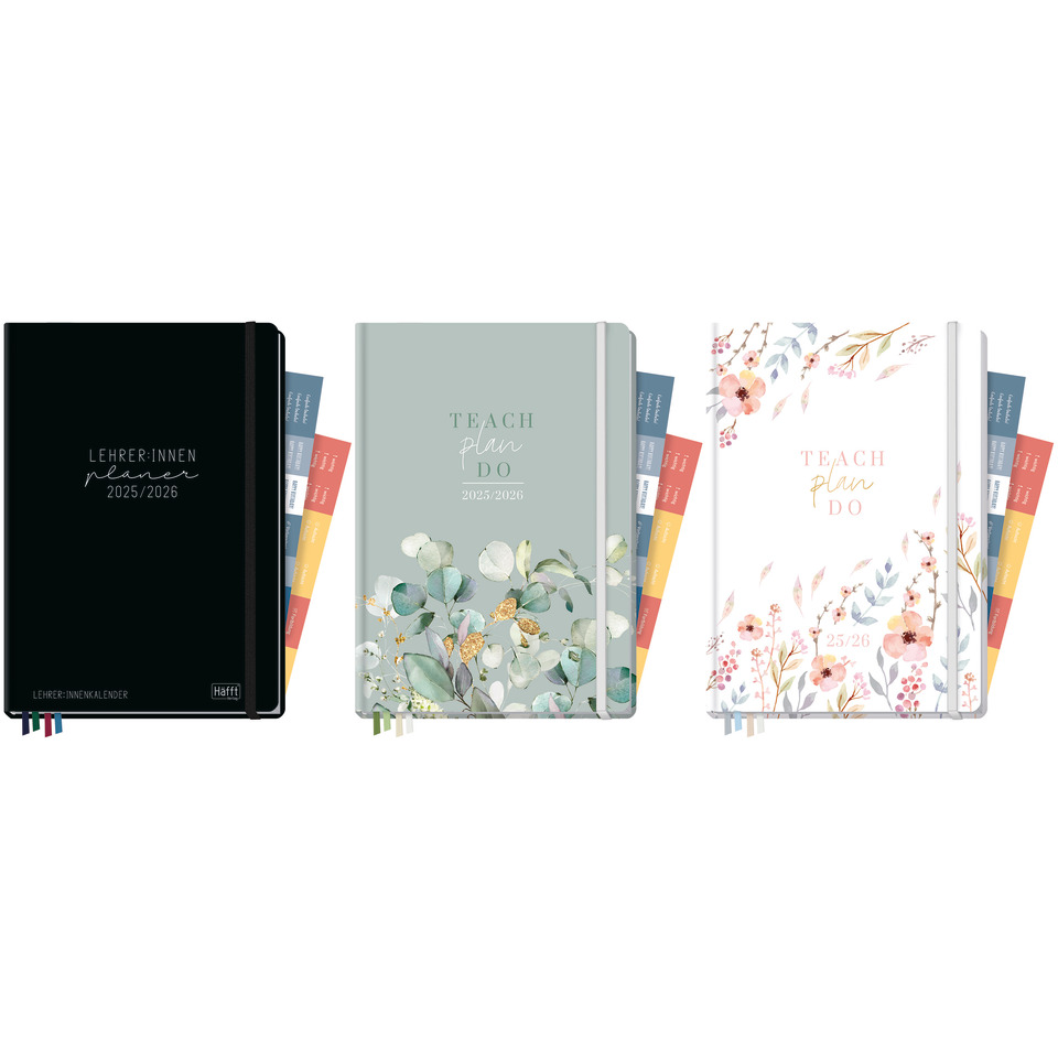 Der Lehrer-Planer 25/26 ist ideal zur Selbstorganisation im Schulalltag geeignet und bietet Ihnen neben einem geräumigen Kalendarium zahlreiche hilfreiche Tools und Sonderseiten. Speziell für Lehrer konzipiert und mit einer funktionalen Ausstattung versehen, ist der Lehrer-Planer das erwachsene Pendant zu unseren beliebten Häfft-Produkten für Schüler. Der Lehrer-Planer dient nicht nur zur optimalen Planung rund um die Unterrichtswoche, sondern motiviert und inspiriert Sie auch, hilft Ihnen dabei, Stress zu reduzieren und macht einfach Spaß! Das klare und dabei doch detailverliebte Layout mit To-do-Listen zum Abhaken und einer einzigartigen Nullten Stunde für Vorbereitungen vor Schulbeginn harmoniert mit dem robusten und abwischbaren Harcover-Einband. Führen Sie außerdem bis zu 12 Klassen- und Notenlisten parallel – so behalten Sie immer den Überblick. Der frische Look macht es zu einem wahren Vergnügen, Stundenthemen, Konferenzen und Korrekturphasen einzutragen. Die bunten Sticker setzen gut gelaunte Akzente und heben Wichtiges besonders hervor.