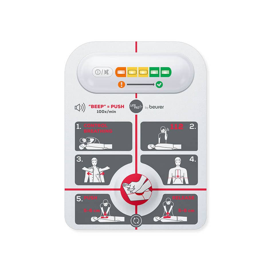 Die Schritt-für-Schritt-Anleitung hilft Ihnen, einen kühlen Kopf zu bewahren. Durch die farbigen LED’s erhalten Sie visuelles Feedback für den optimalen Kompressionsdruck.
