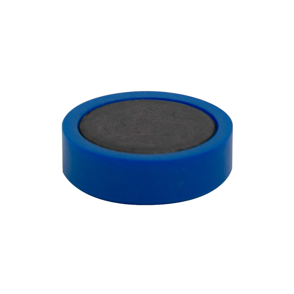 Magnete, rund. Halten auf jeder magnethaftenden Stahl- oder Eisenoberfläche. Magnet mit ABS-Kunststoff-Hülle um ein Zerkratzen der Schreibtafeloberfläche zu verhindern. Praktischer Griffrand sichert einfache Handhabung. Jederzeit einfach ablösbar und wieder verwendbar. Zum Anheften von Notizen und Aushängen im Handel, Industrie, Gewerbe, Büro, Schulen. Anwendung auf Whiteboards, Weißwandtafeln, Jahresplanern, Magnettafeln, Magnetleisten, Kühlschrank, etc. Ideal für farbliche Kennzeichnung. PG-Inhalt: 10 Stück. Kapazität für 6 Blatt A4. Größe (Ø x T): 25 x 8 mm. Tragfähigkeit: 820 g. Farbe: blau