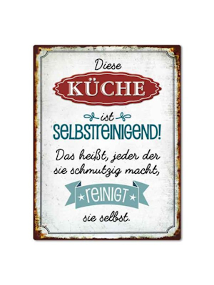 Magnet mit Spruch Maße: 8 x 10,6 cm Diese Küche ist selbstreinigend! Das heißt, jeder der sie schmutzig macht, reinigt sie selbst. Magnet Küche selbstreinigend