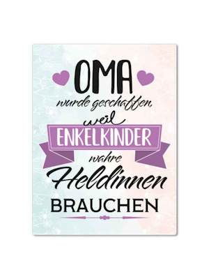 Magnet mit Spruch: Maße: 8 x 10,6 cm Oma wurde geschaffen weil Enkelkinder wahren Heldinnen brauchen Magnet Oma – Enkelkinder
