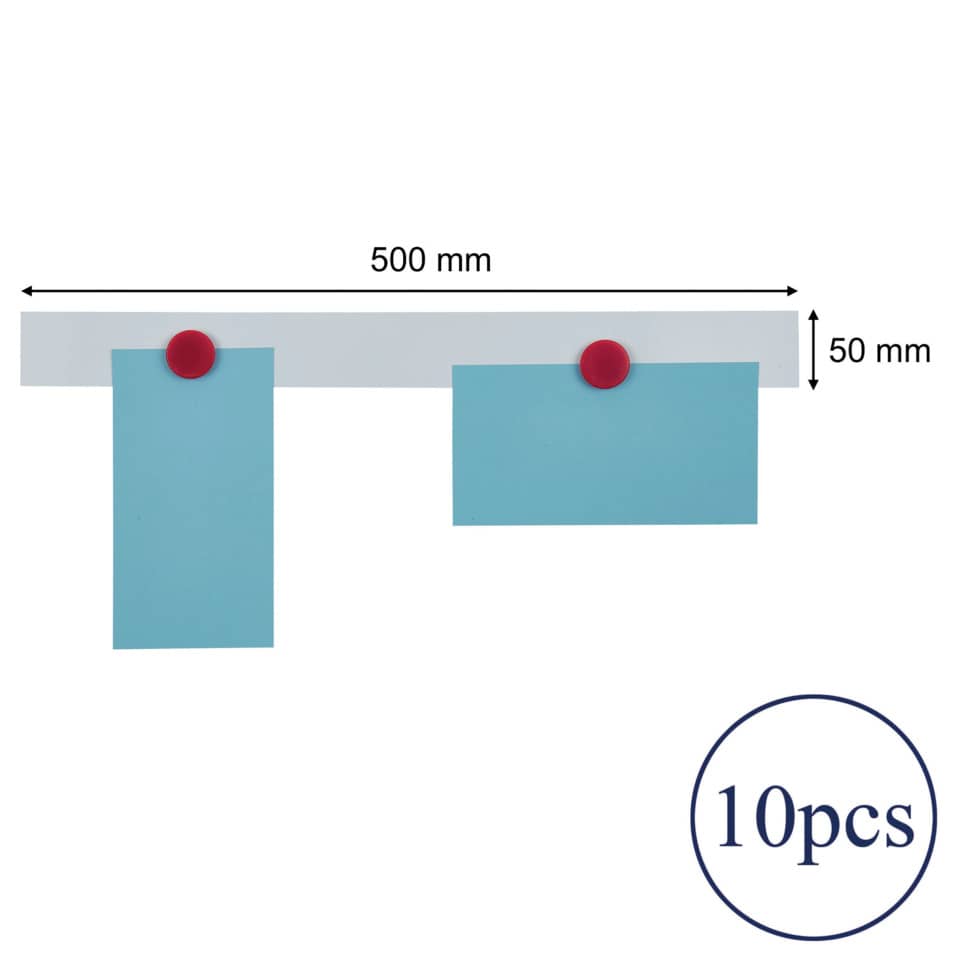 Magnetleiste. Ausführung: 0,5 mm, beschriftbar, selbstklebend. Werkstoff: kunststoffbeschichtet. Größe (L x B): 50 x 5 cm. Farbe: weiß.