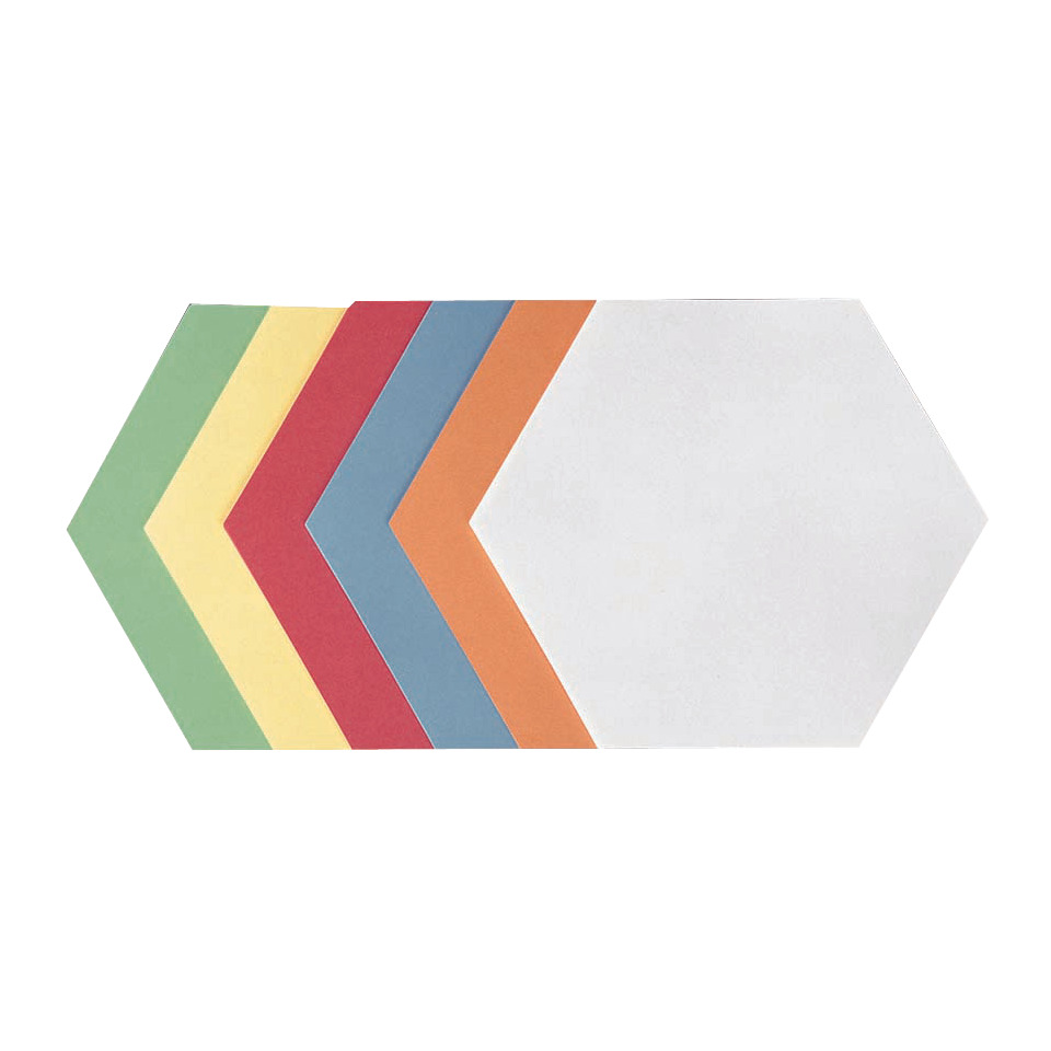 Moderationskarte Wabe. Werkstoff: 100% Altpapier. Flächenmasse des Papiers: 130 g/qm. Rohstoff zur Herstellung aus verantwortungsvoller, nachhaltiger Forstwirtschaft. Größe (B x H) oder (Ø): 190 x 165 mm. Farbe: sortiert. Inhalt der Packung: 500 St.