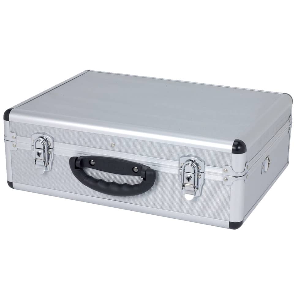 Moderationskoffer Kompakt. Ausführung des Inhalts des Sets: 2.100 Teile. Material des Behälters: Aluminium. Größe (B x H x T): 43 x 12 x 32 cm. Masse (Gewicht): 5 kg. Farbe: silber. Inhalt: 5 Moderationswolken 25 cm x 42 cm, 500 Rechtecke 9,5 x 20,5 cm*, 100 Ovale 11 x 19 cm*, 100 Kreise Ø 9,5 cm*, 100 Kreise Ø 14 cm*, 50 Kreise Ø 19,5 cm*, je 520 Markierungspunkte in rot und grün, 16 FlipchartMarker (8 x schwarz, 8 x rot), 4 JumboMarker (rot, grün, blau, schwarz), 1 Schere, 1 Kreppband, 1 Klebestift, 300 Pinnadeln mit Rundkopf, 1 Nadelkissen, 1 Laserpointer mit integriertem Kugelschreiber.