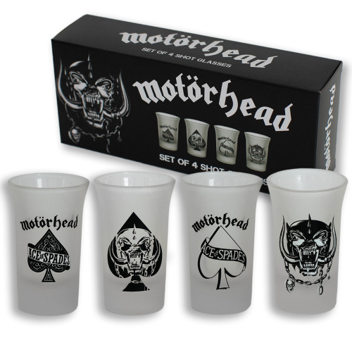 Länge: 4.50cm Breite: 4.50cm Höhe: 7.50cm Volumen: 50,00ml Material: Glas Set mit 4 unterschiedlichen Motiven verpackt in einer bedruckten Geschenkbox. Nicht für Mikrowellen und Geschirrspüler geeignet. Motörhead Schnapsglas 4er Set