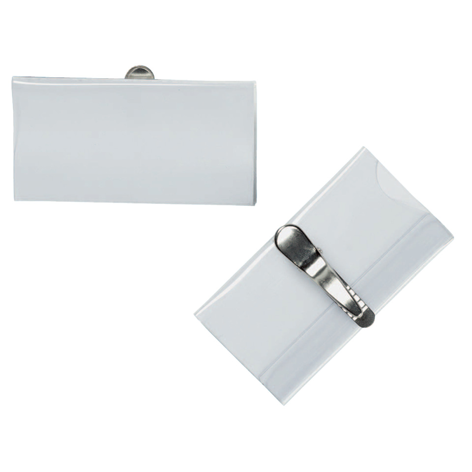 Aus glasklarer Hartfolie, mit weißem, auswechselbarem Blanko-Einsteckschild.