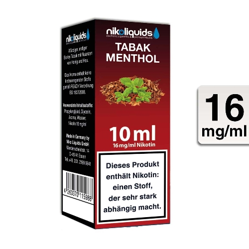 Nikoliquids E-Liquid Tabak Menthol 10ml 16mg Nikotin